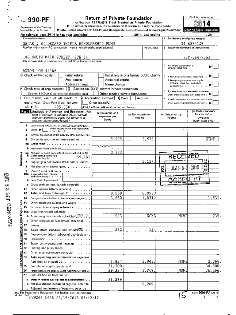 ROME No 15450052Return of Private Foundation990PFForm00014or Section 4947(a)(1) Trust Treated as Private Foundation ^ Do not enter social security numbers on this form as it may be made public. ^