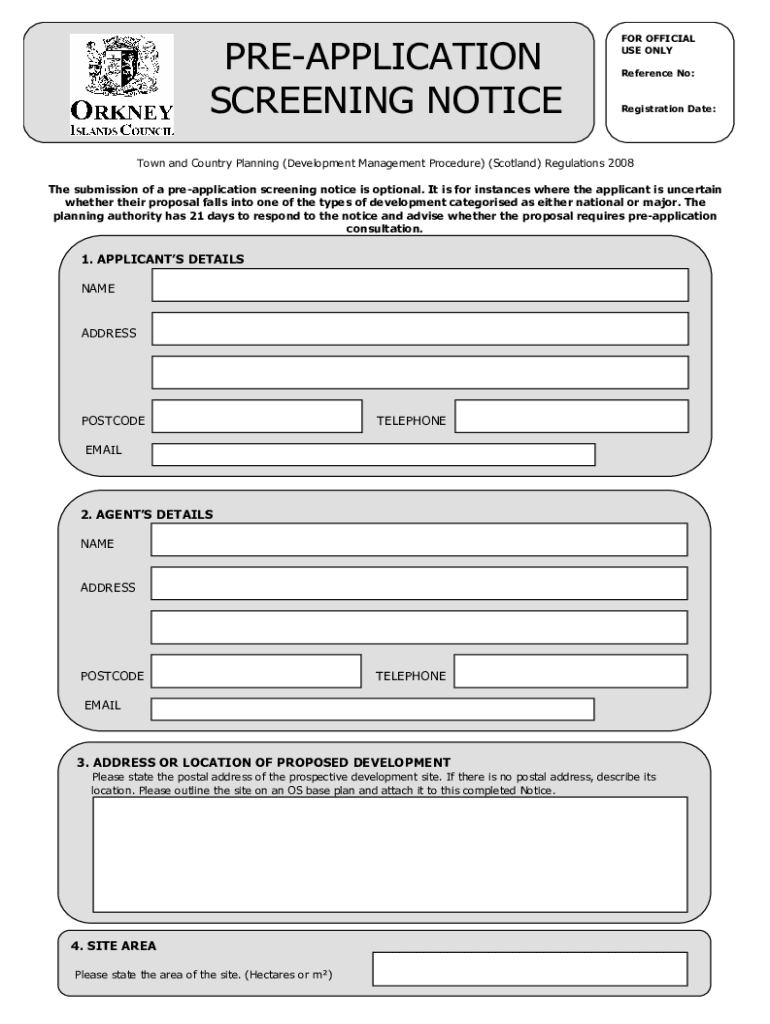 Pre-application screening notice pre-application is a form or process that allows individuals or entities to provide information to the relevant authority before submitting a formal application.