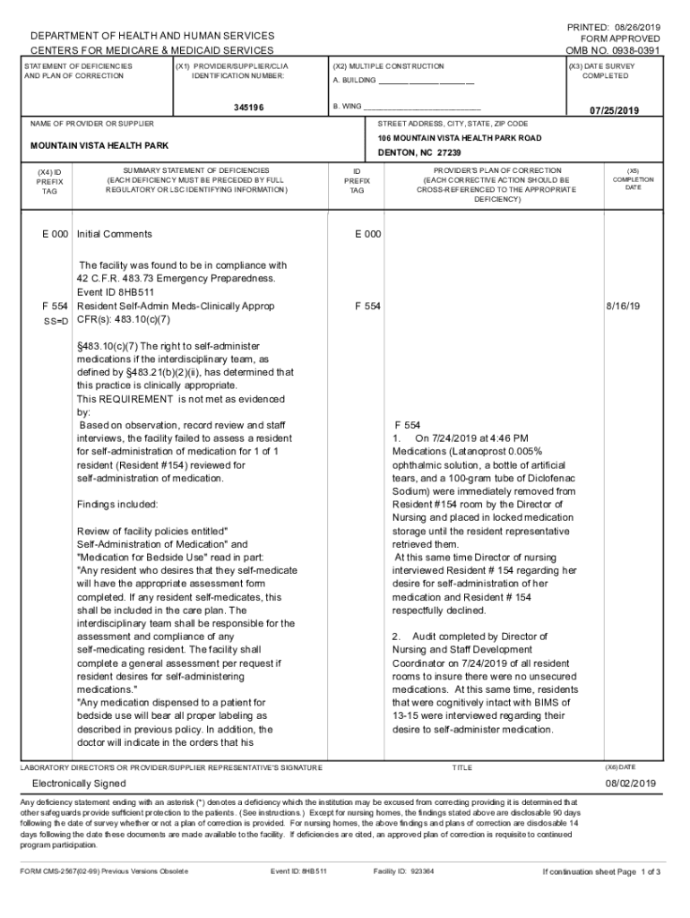 PRINTED: 08/26/2019 FORM APPROVEDDEPARTMENT OF HEALTH AND HUMAN SERVICES CENTERS FOR MEDICARE & MEDICAID SERVICES STATEMENT OF DEFICIENCIES AND PLAN OF CORRECTION(X1) PROVIDER/SUPPLIER/CIA IDENTIFICATION