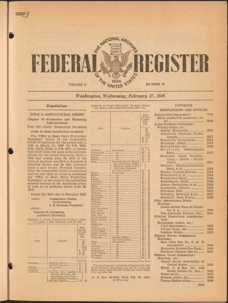 O N A L, X1UTTERA V /, 1934 c & * A fit E O VOLUME 11NUMBER 40Washington, Wednesday, February 27, 1946, RegulationsSchedule AD airy Production Payment Shed u l e, A April 1,1946, The rough June 30,1949Con.