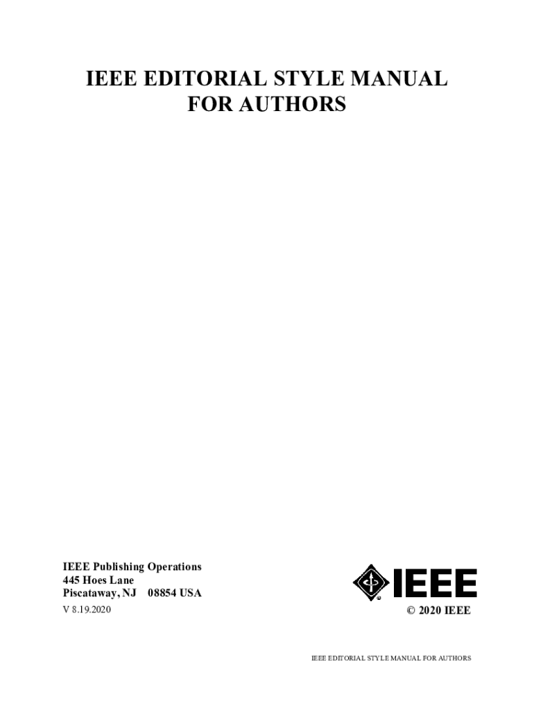 IEEE EDITORIAL STYLE MANUAL FOR AUTHORS IEEE Publishing Operations 445 Hoes Lane Piscataway, NJ 08854 USA V 8.19.2020 2020 IEEE EDITORIAL STYLE MANUAL FOR AUTHORS2Table of Contents Table of Contents