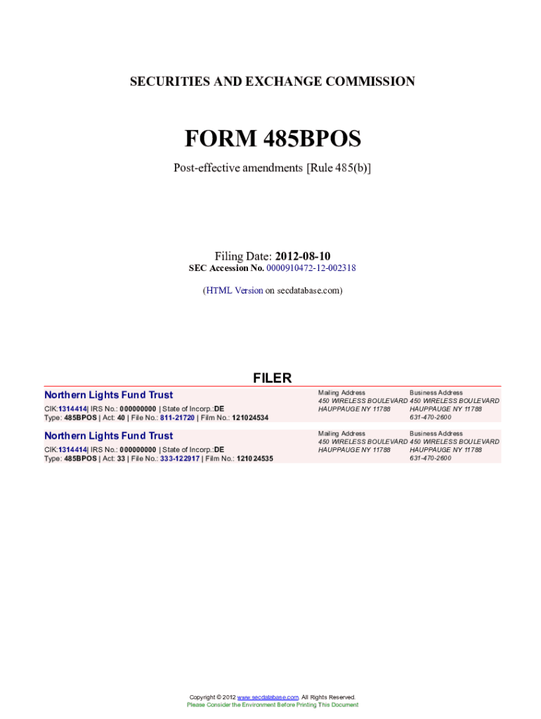 Get the free Northern Lights Fund Trust Form 485BPOS Filed 2012-08-10. Accession Number