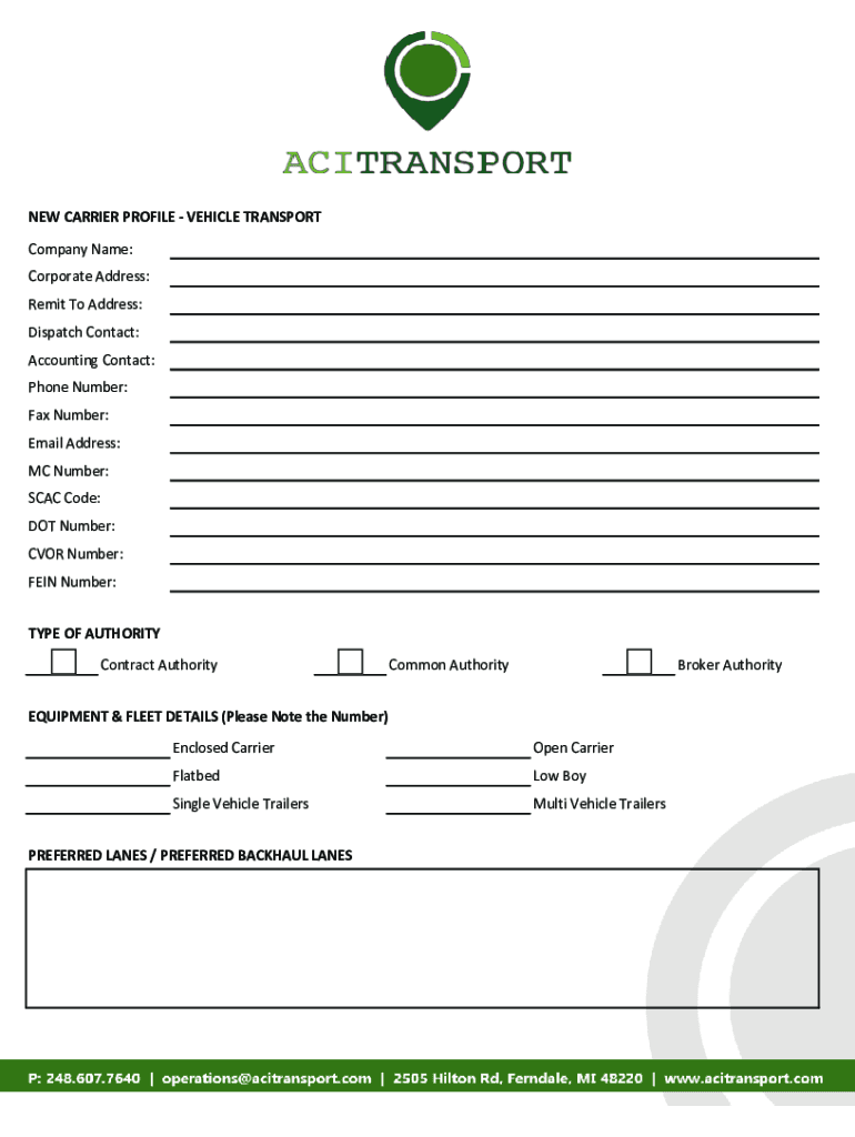 Get the free New Carrier Packet Form - ACI Transport
