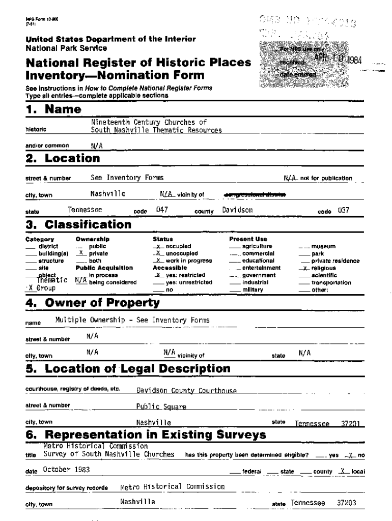 To fill out the National Register of Historic Places nomination form, you will need to complete the required information about the property's historical significance and architectural features.