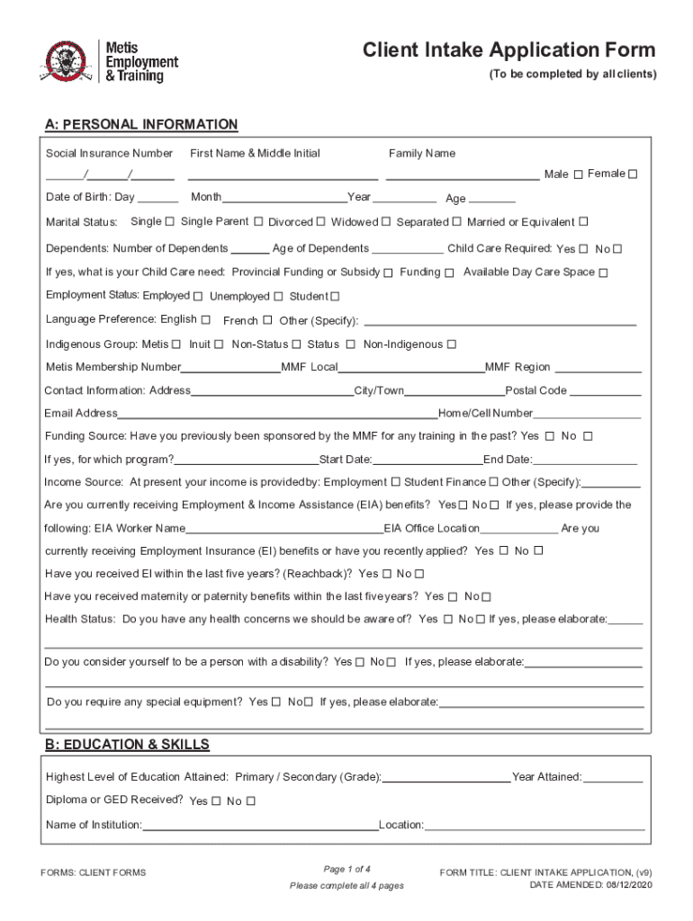 Get the free Client Intake Application Form - mmfemployment.ca