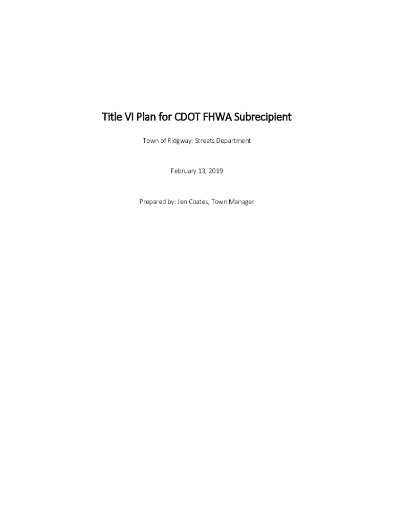 Get the free Title VI Plan for CDOT FHWA Subrecipient - Town of Ridgway