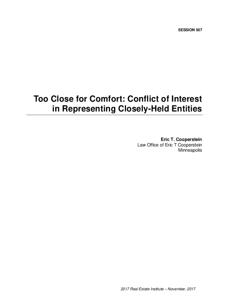 SESSION 507Too Close for Comfort: Conflict of Interest in Representing CloselyHeld Entities Eric T. Cooper stein Law Office of Eric T Cooper stein Minneapolis2017 Real Estate Institute November, 2017Minnesota