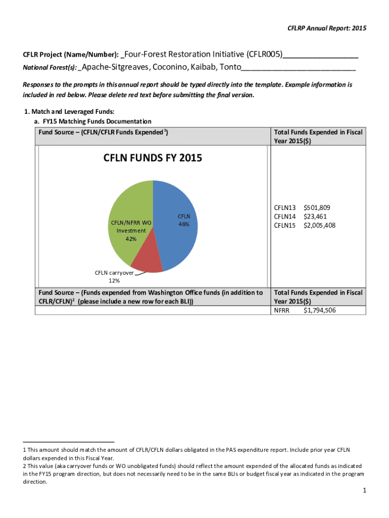 CFRP Annual Report: 2015CFLR Project (Name/Number): Four Forest Restoration Initiative (CFLR005) National Forest(s): ApacheSitgreaves, Cocooning, Kebab, Tonto Responses to the prompts in this annual