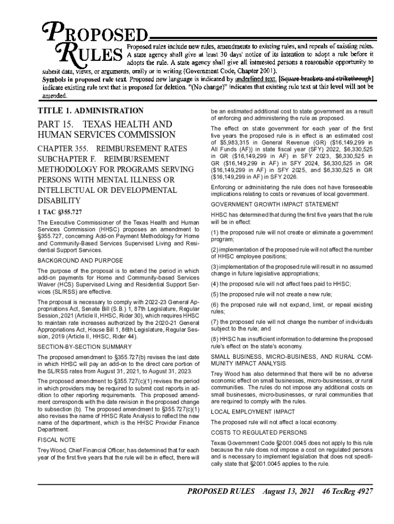 of enforcing and administering the rule as proposed. PART 15. TEXAS HEALTH AND