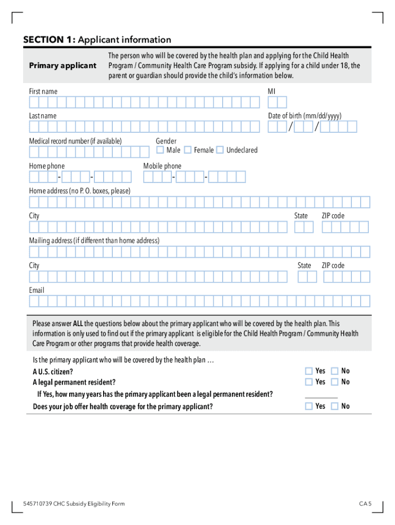 Child Health Program / Community Health Care Program Subsidy Eligibility Form 2021 Use this form to apply for a subsidy to pay your monthly premiums and most outofpocket medical costs under the Kaiser