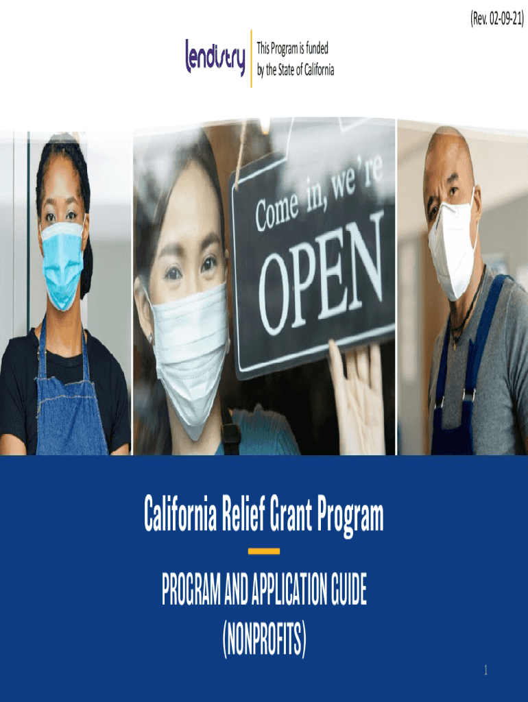 (Rev. 020921) This Program is funded by the State of California Relief Grant Program AND APPLICATION GUIDE (NONPROFITS)1TABLE OF CONTENTSABOUT THE PROGRAM4TIPS FOR APPLYING13APPLICATION CERTIFICATION20NONPROFIT