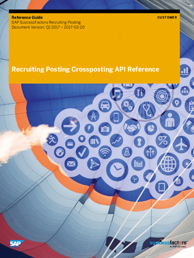 Reference Guide SAP SuccessFactors Recruiting Posting Document Version: Q1 2017 20170220CUSTOMERRecruiting Posting Cross posting API ReferenceTypographic ConventionsType StyleDescriptionExampleWords