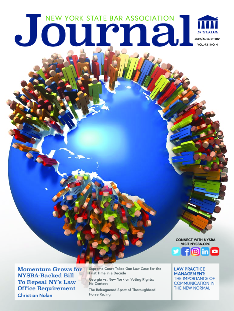 Journal NEW YORK STATE BAR ASSOCIATIONJULY/AUGUST 2021 VOL. 93 NO. 4CONNECT WITH NY SBA VISIT NY SBA. Momentum Grows for NYSBABacked Bill To Repeal NY's Law Office Requirement Christian NolanSupreme