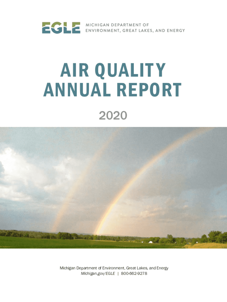 AIR QUALITY Y ANNUAL REPORT 2020Michigan Department of Environment, Great Lakes, and Energy Michigan.gov/EGLE 8006629278Air Quality Annual Report 2020 EXECUTIVE SUMMARY This report gives an overview