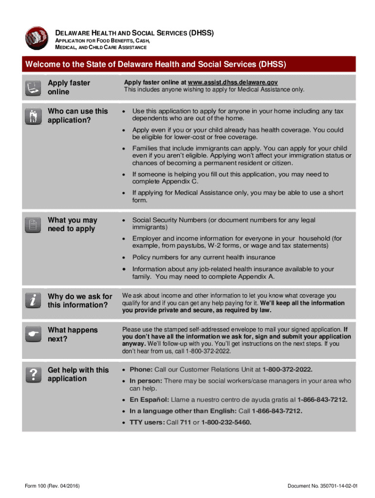 DELAWARE HEALTH AND SOCIAL SERVICES (DSS) APPLICATION FOR FOOD BENEFITS, CASH, MEDICAL, AND CHILD CARE ASSISTANCEWelcome to the State of Delaware Health and Social Services (DSS) Apply faster online