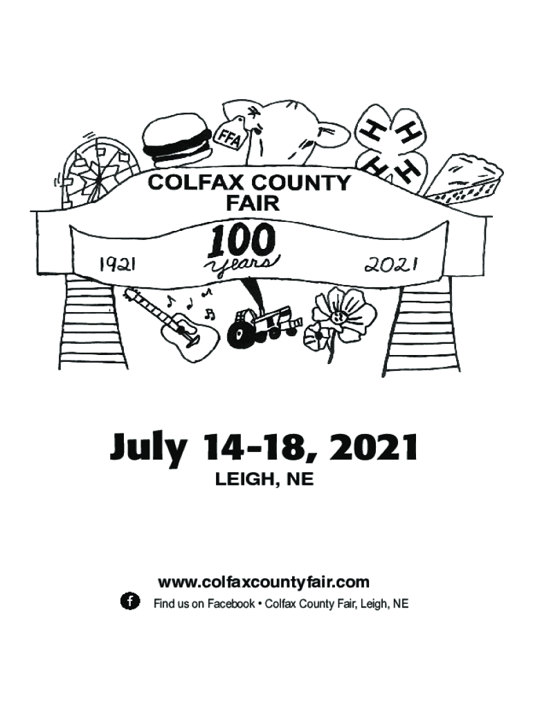 July 1418, 2021 LEIGH, New.colfaxcountyfair.com Find us on Facebook Colfax County Fair, Leigh, PREMIUM LIST Colfax County Fair Wednesday, Thursday, Friday, Saturday and Sunday, July 14, 15, 16, 17