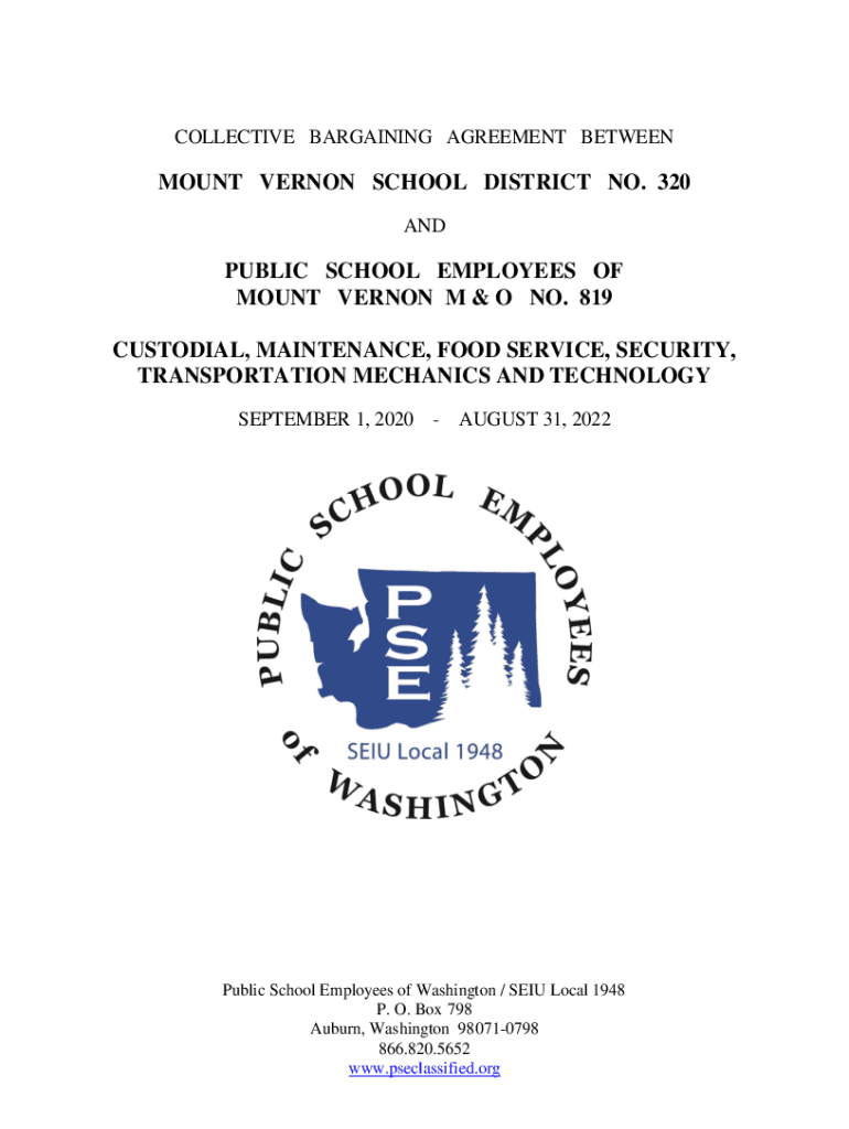 COLLECTIVE BARGAINING AGREEMENT BETWEENMOUNT VERNON SCHOOL DISTRICT NO. 320 PUBLIC SCHOOL EMPLOYEES OF MOUNT VERNON M & O NO. 819 CUSTODIAL, MAINTENANCE, FOOD SERVICE, SECURITY, TRANSPORTATION MECHANICS