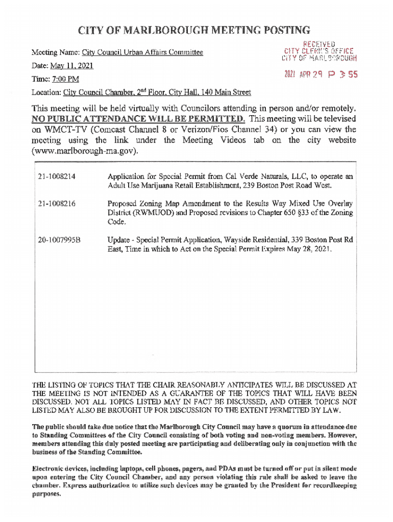 Meeting Name: City Council Urban Affairs Committee v 'y. s. Date: MAV 11, 2021 Time: 7:00 PM Location: City Council Chamber, 2d Floor, City Hall, 140 Main Streets meeting will be held virtually with