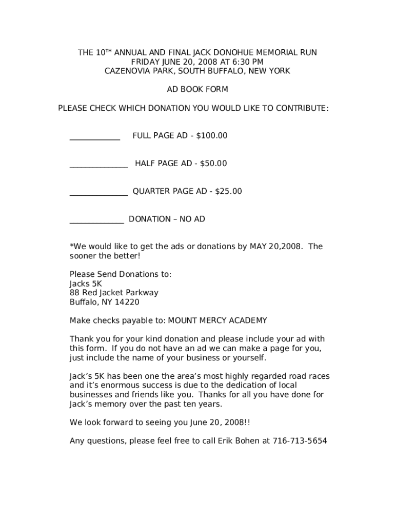 Frequently asked questions about the form THE 10TH ANNUAL AND FINAL JACK DONOHUE MEMORIAL RUN