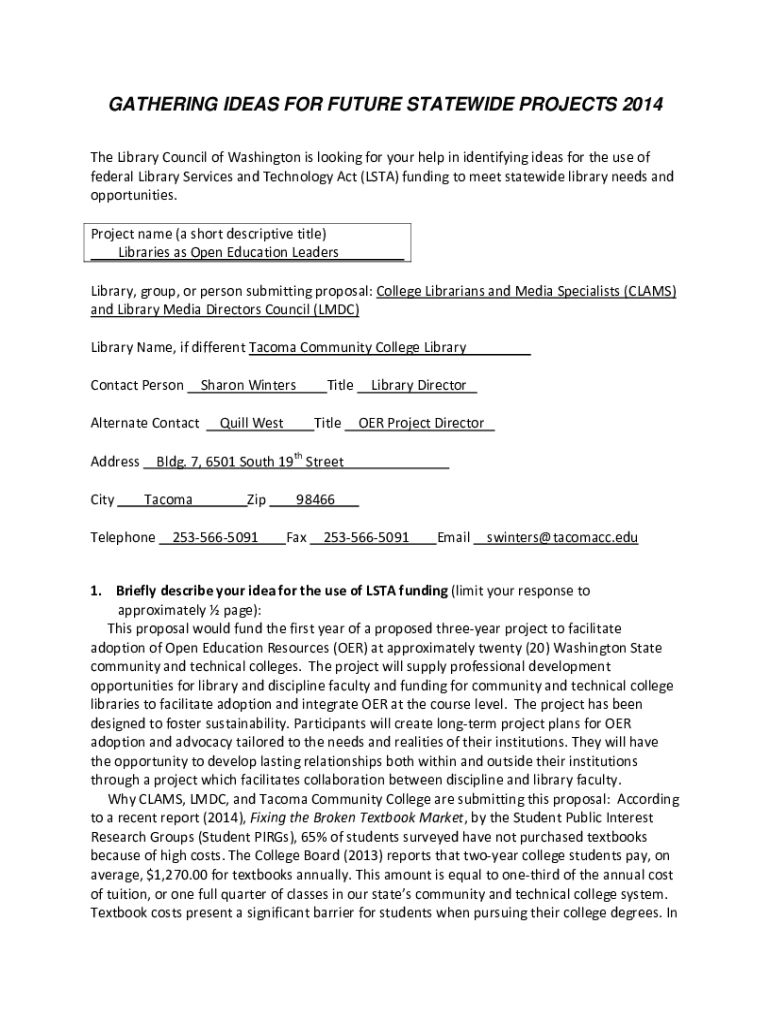 Get the free GATHERING IDEAS FOR FUTURE STATEWIDE PROJECTS ... - sos.wa.gov
