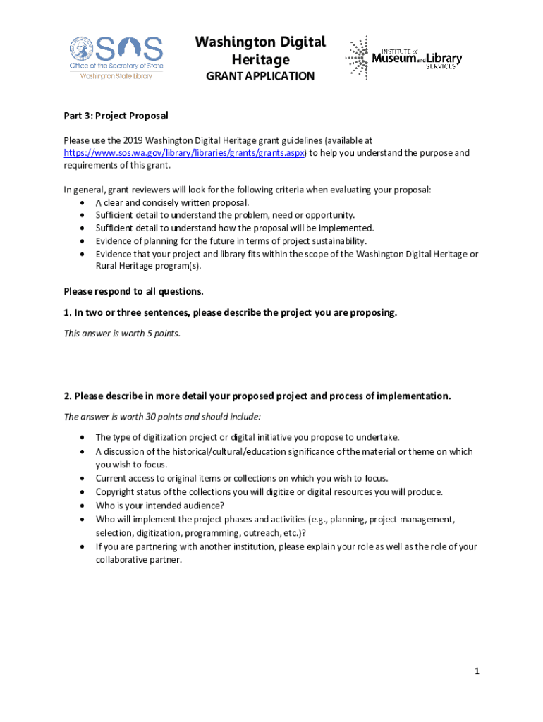 Washington Digital Heritage GRANT APPLICATIONPart 3: Project Proposal Please use the 2019 Washington Digital Heritage grant guidelines (available at https://www.sos.wa.gov/library/libraries/grants/grants.aspx)