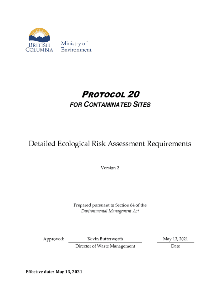 PROTOCOL 20 FOR CONTAMINATED SITESDetailed Ecological Risk Assessment Requirements Version 2Prepared pursuant to Section 64 of the Environmental Management Approved:Kevin Butterworth 13, 2021Director