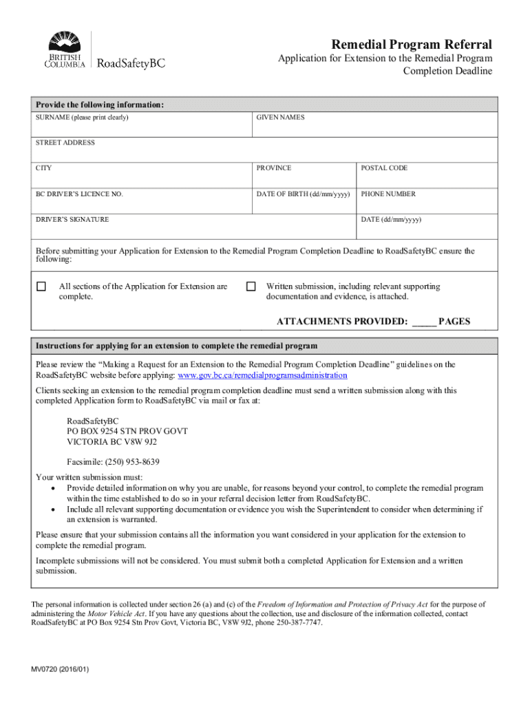 Remedial Program Referral Application for Extension to the Remedial Program Completion Deadline Provide the following information: SURNAME (please print clearly)GIVEN NAMESSTREET ADDRESS CITYPROVINCEPOSTAL