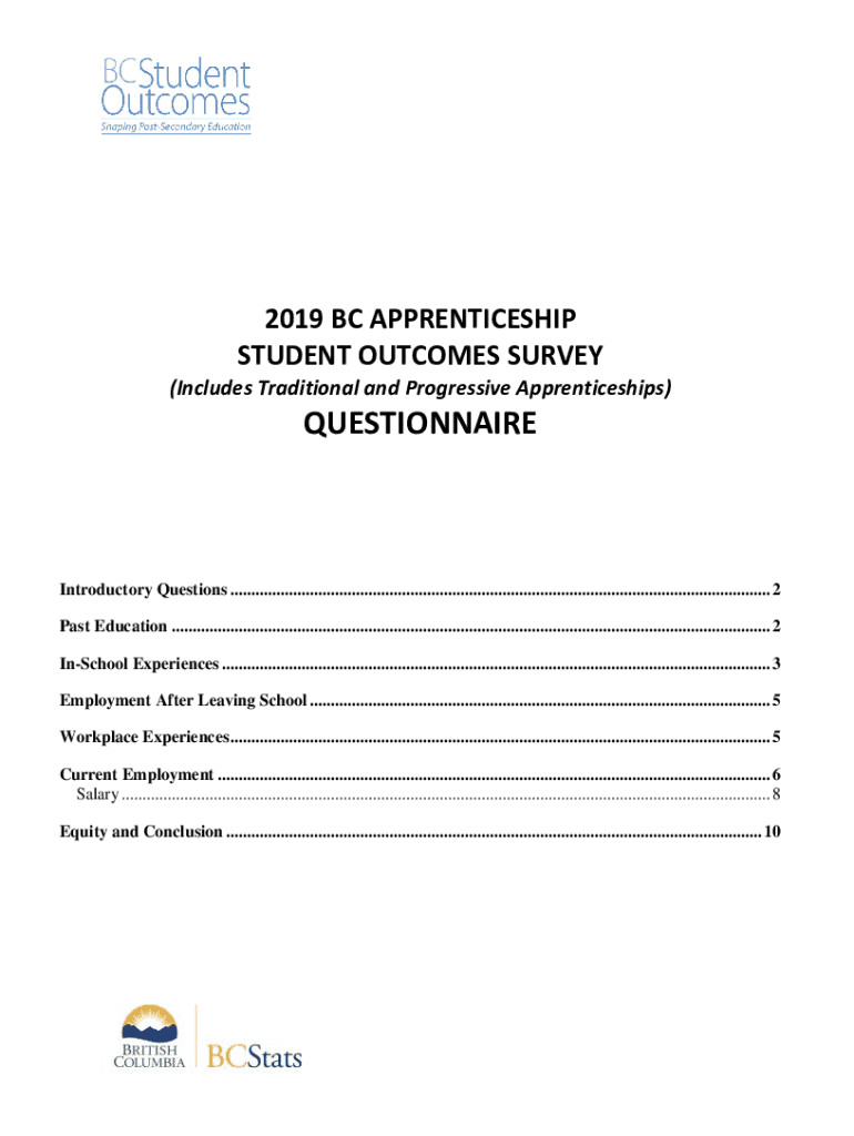 2019 BC APPRENTICESHIP STUDENT OUTCOMES SURVEY(Includes Traditional and Progressive Apprenticeships)QUESTIONNAIREIntroductory Questions .................................................................................................................................