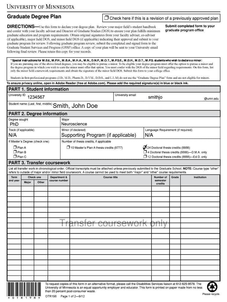 Graduate students at the University of Minnesota are the primary audience for the Graduate Degree Plan Form. This form is particularly necessary during specific scenarios, such as initial enrollment or when requesting changes to coursework.