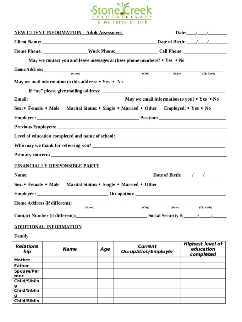 Before starting filling out ASAM ASSESSMENT DATE: Check One: New Case CLIENT NAME ... MS Word form, ensure that you have prepared all the necessary information. It's a mandatory part, as far as some typos can cause unwanted consequences starting with re-submission of the whole entire blank and completing with deadlines missed and you might be charged a penalty fee. You have to be careful enough filling out the figures. At first glance, you might think of it as to be quite easy. Nevertheless, it is simple to make a mistake. Some people use such lifehack as storing their records in a separate file or a record book and then put this into documents' temlates. Nonetheless, try to make all efforts and present accurate and genuine info in your ASAM ASSESSMENT DATE: Check One: New Case CLIENT NAME ... .doc form, and doublecheck it while filling out all fields. If you find any mistakes later, you can easily make some more corrections when you use PDFfiller tool without missing deadlines.