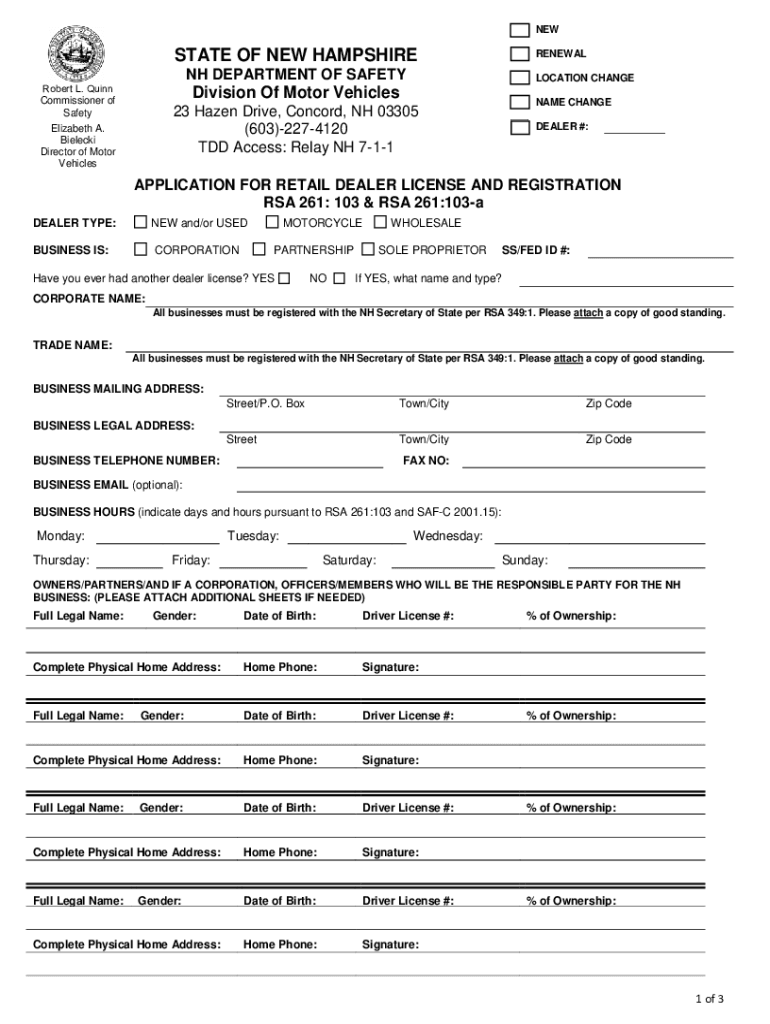 NH RDMV 735 Form Versions