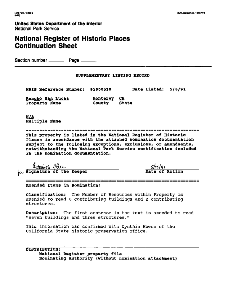 NP8 Form 104004 M)0 MB Approx*! No. 10244019United States Department of the Interior National Park ServiceNational Register of Historic Places Continuation Sheet Section number Page SUPPLEMENTARY