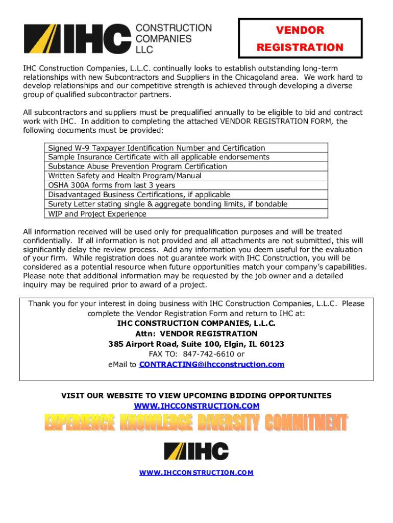 Get the Get the free Vendor Registration Form - IHC Construction ...