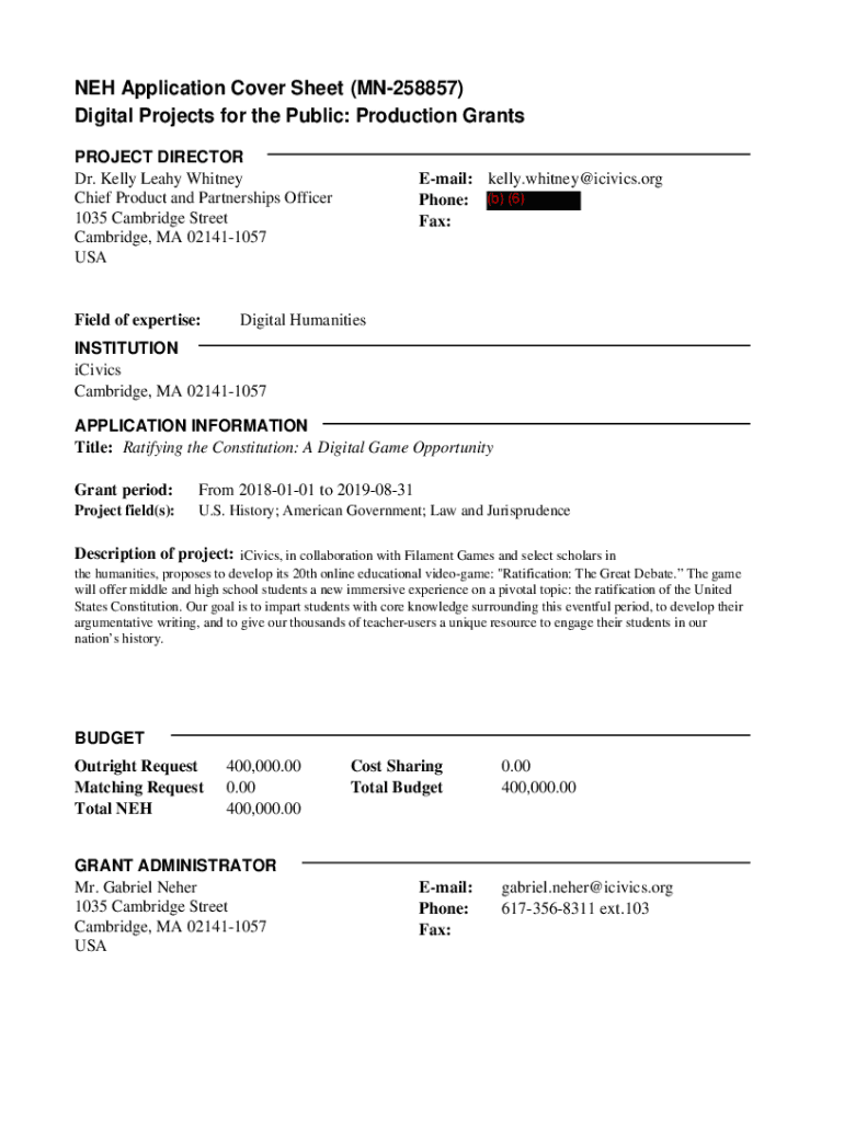 Get the free NEH Application Cover Sheet Digital Projects for the Public ...