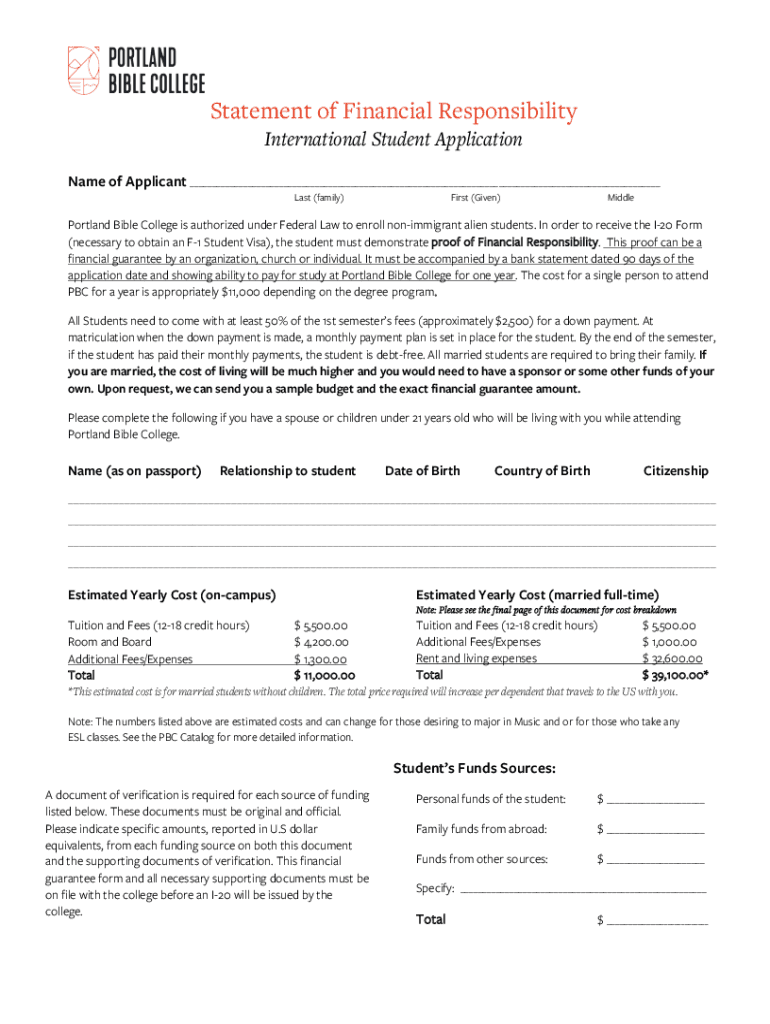 Get the free Statement of Financial Responsibility form - Portland Bible ...