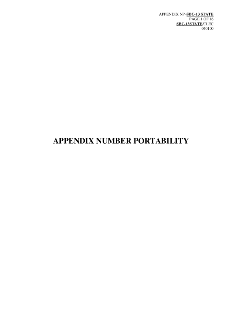 APPENDIX NPSBC13 STATE PAGE 1 OF 16 SBC13STATE/ALEC 040100APPENDIX NUMBER PORTABILITYAPPENDIX NPSBC13 STATE PAGE 2 OF 16 SBC13STATE/ALEC 040100TABLE OF CONTENTS 1. INTRODUCTION...................................................................................................................
