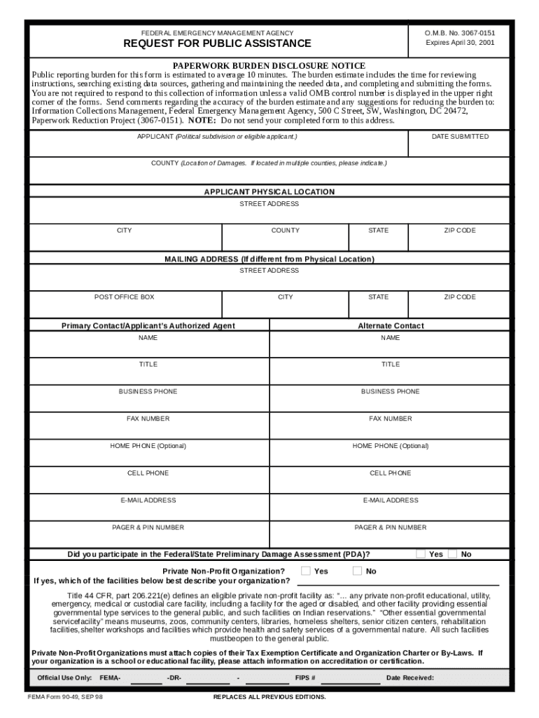 What is FEDERAL EMERGENCY MANAGEMENT AGENCY O.M.B. No. 3067-0151 ... Form?