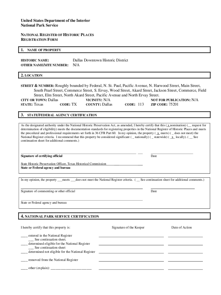 United States Department of the Interior National Park Service NATIONAL REGISTER OF HISTORIC PLACES REGISTRATION FORM 1. NAME OF PROPERTY HISTORIC NAME: OTHER NAME/SITE NUMBER:Dallas Downtown Historic