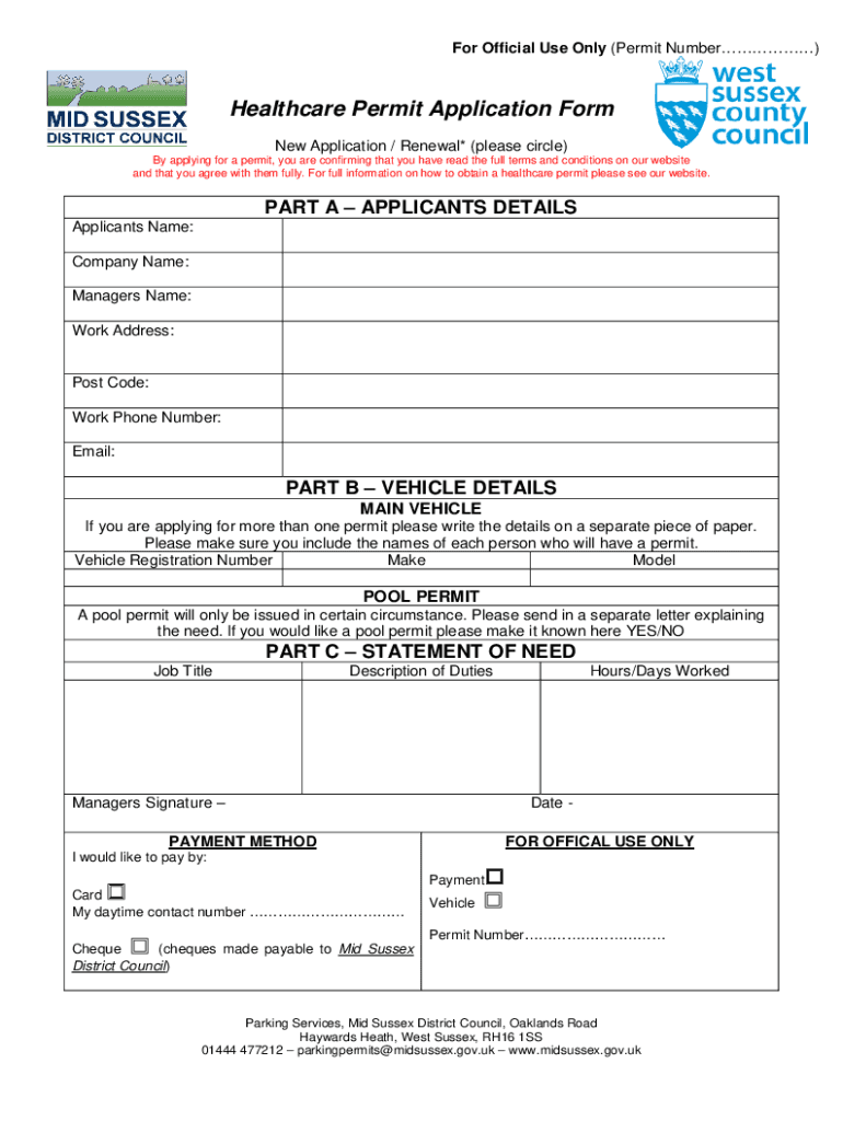 For Official Use Only (Permit Number)Healthcare Permit Application Form New Application / Renewal* (please circle) By applying for a permit, you are confirming that you have read the full terms and