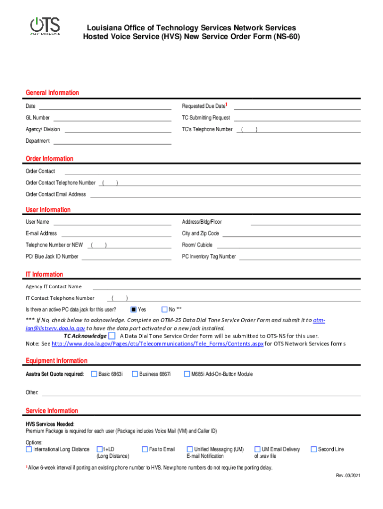 Hosted Voice Service (HIS) New Service Order Form (NS60)Use F1 for Help or Click Here for Form Instructions in .pdf