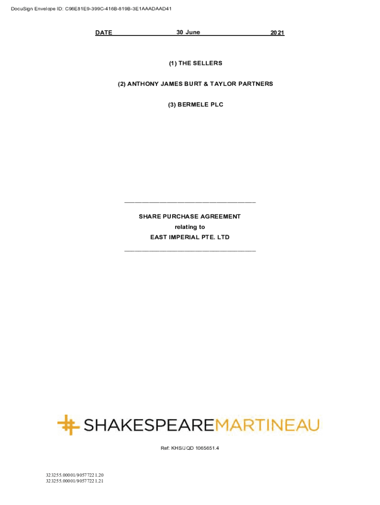 DocuSign Envelope ID: C96E81E9399C416B819B3E1AAADAAD41 7A64C679377F458AB7C050276FFA55ABDATE30 June2021(1) THE SELLERS (2) ANTHONY JAMES BURT & TAYLOR PARTNERS (3) BERKELEY PLC SHARE PURCHASE AGREEMENT