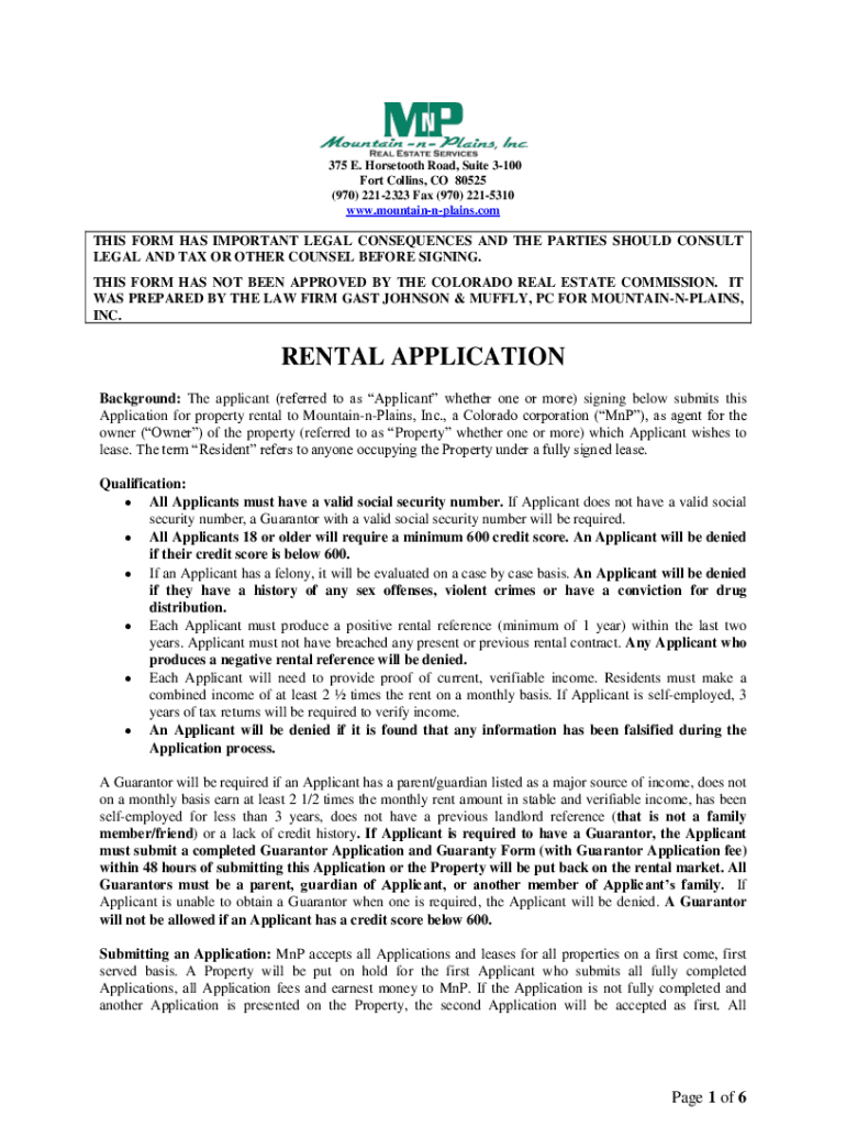 375 E. Horse tooth Road, Suite 3100 Fort Collins, CO 80525 (970) 2212323 Fax (970) 2215310 www.mountainnplains.comTHIS FORM HAS IMPORTANT LEGAL CONSEQUENCES AND THE PARTIES SHOULD CONSULT LEGAL AND