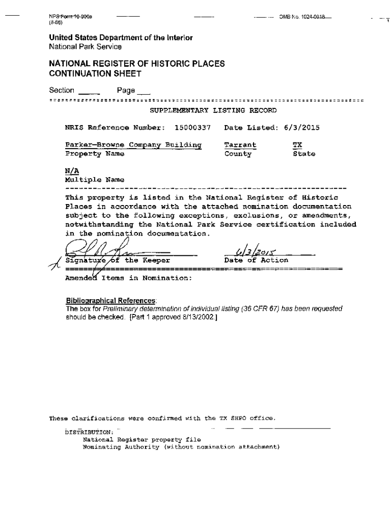NPSFormt6966a. Amino.1024,00 'B. (886)United States Department of the Interior National Park ServiceNATIONAL REGISTER OF HISTORIC PLACES CONTINUATION SHEET Section Page SUPPLEMENTARY LISTING RECORDERS