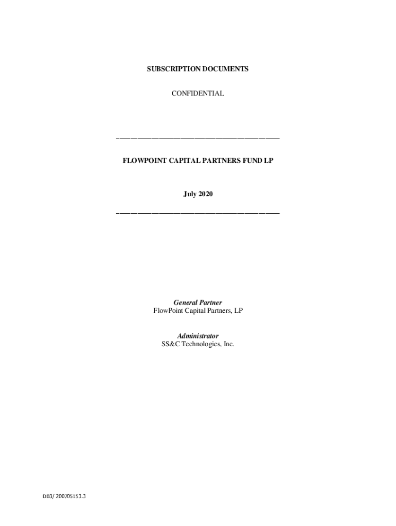 SUBSCRIPTION DOCUMENTS CONFIDENTIAL FLOWERING CAPITAL PARTNERS FUND LP July 2020 General Partner Flowering Capital Partners, Administrator SSC Technologies, Inc.DB3/ 200705153.3FLOWPOINT CAPITAL PARTNERS