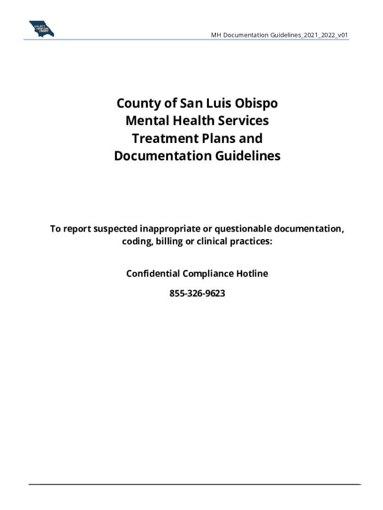 MH Documentation Guidelines_2021_2022_v01County of San Luis Obispo Mental Health Services Treatment Plans and Documentation Guidelines report suspected inappropriate or questionable documentation,