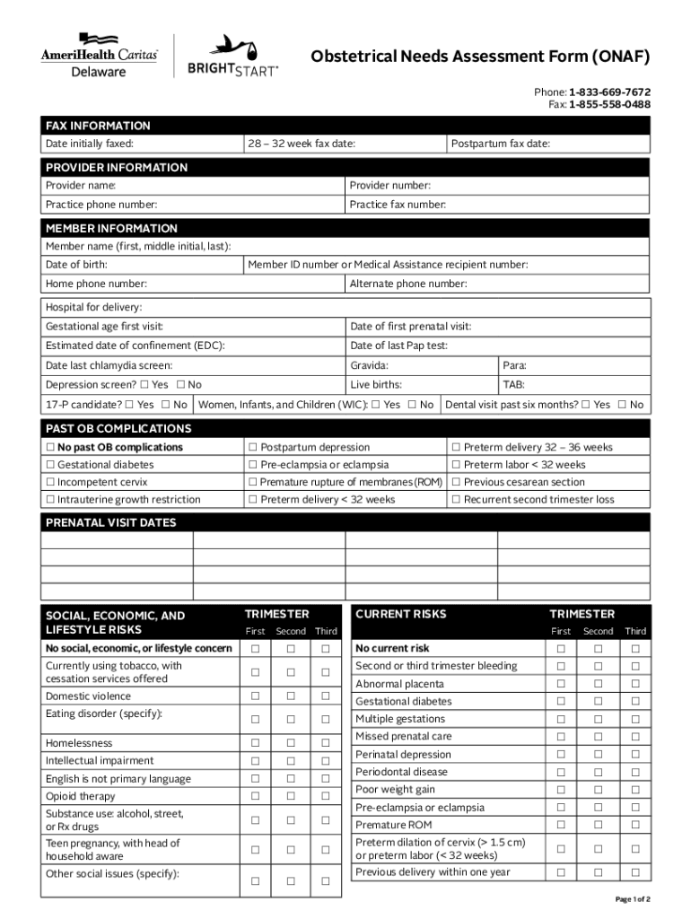 Obstetrical Needs Assessment Form (OLAF) Phone: 18336697672 Fax: 18555580488FAX INFORMATION Date initially faxed:28 32 week fax date:Postpartum fax date:PROVIDER INFORMATION Provider name:Provider