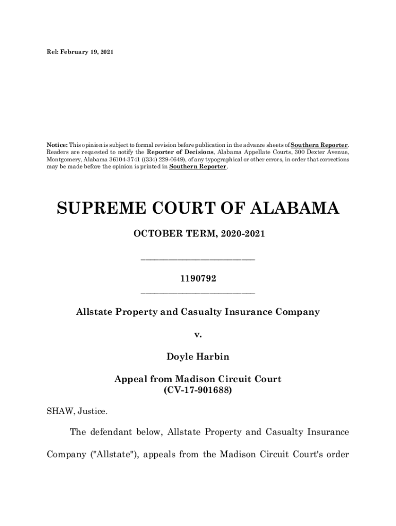 Rel: February 19, 2021Notice: This opinion is subject to formal revision before publication in the advance sheets of Southern Reporter. Readers are requested to notify the Reporter of Decisions, Alabama