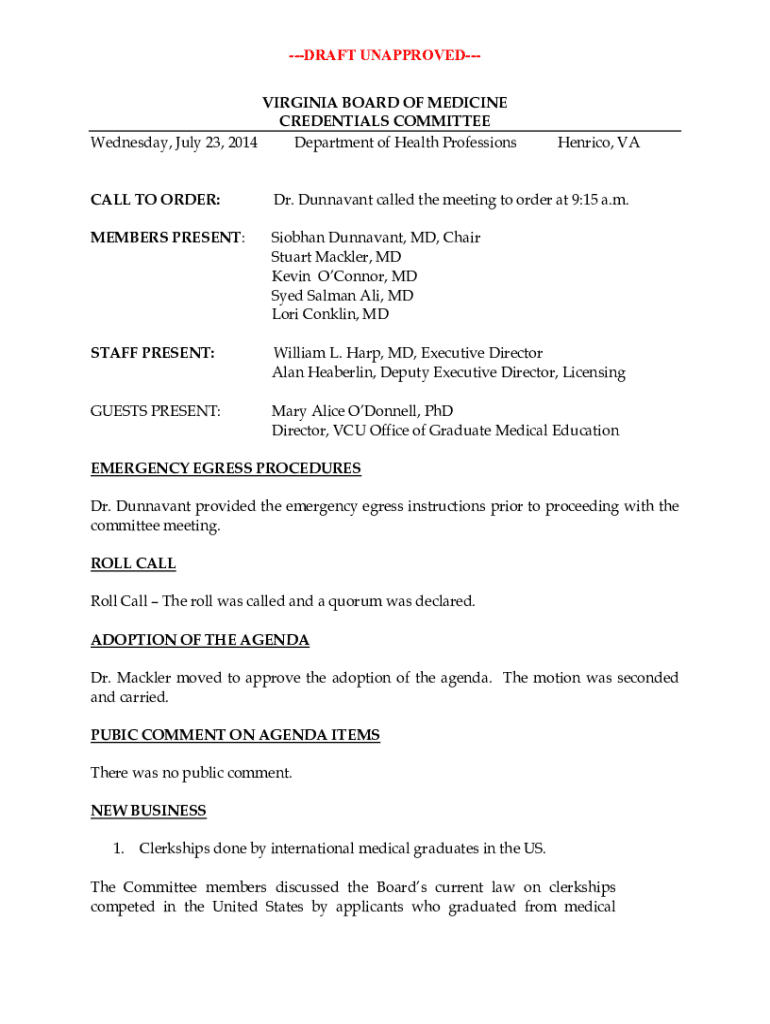 DRAFT UNAPPROVEDVIRGINIA BOARD OF MEDICINE