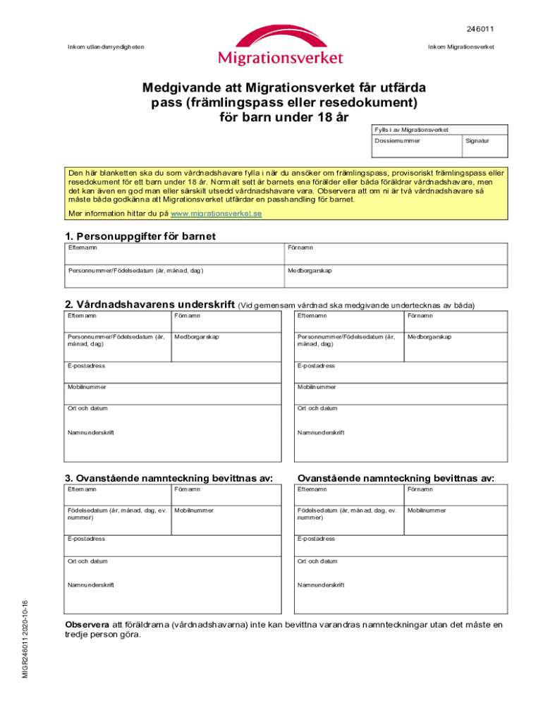 Get the free Medgivande att Migrationsverket fr utfrda pass (frmlingspass eller resedokument) fr ...