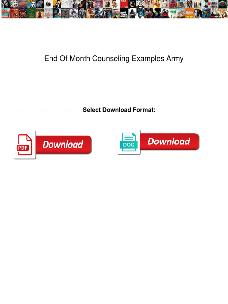 Get the free End Of Month Counseling Examples Army. End Of Month Counseling Examples Army scanners